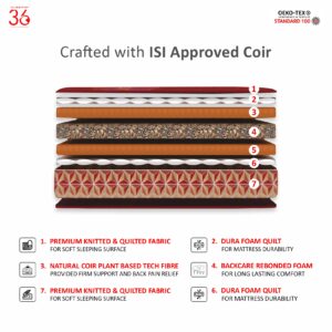 3-Way Anti-Sag Technology ehanced durability while high density coir layer offers extra firmness