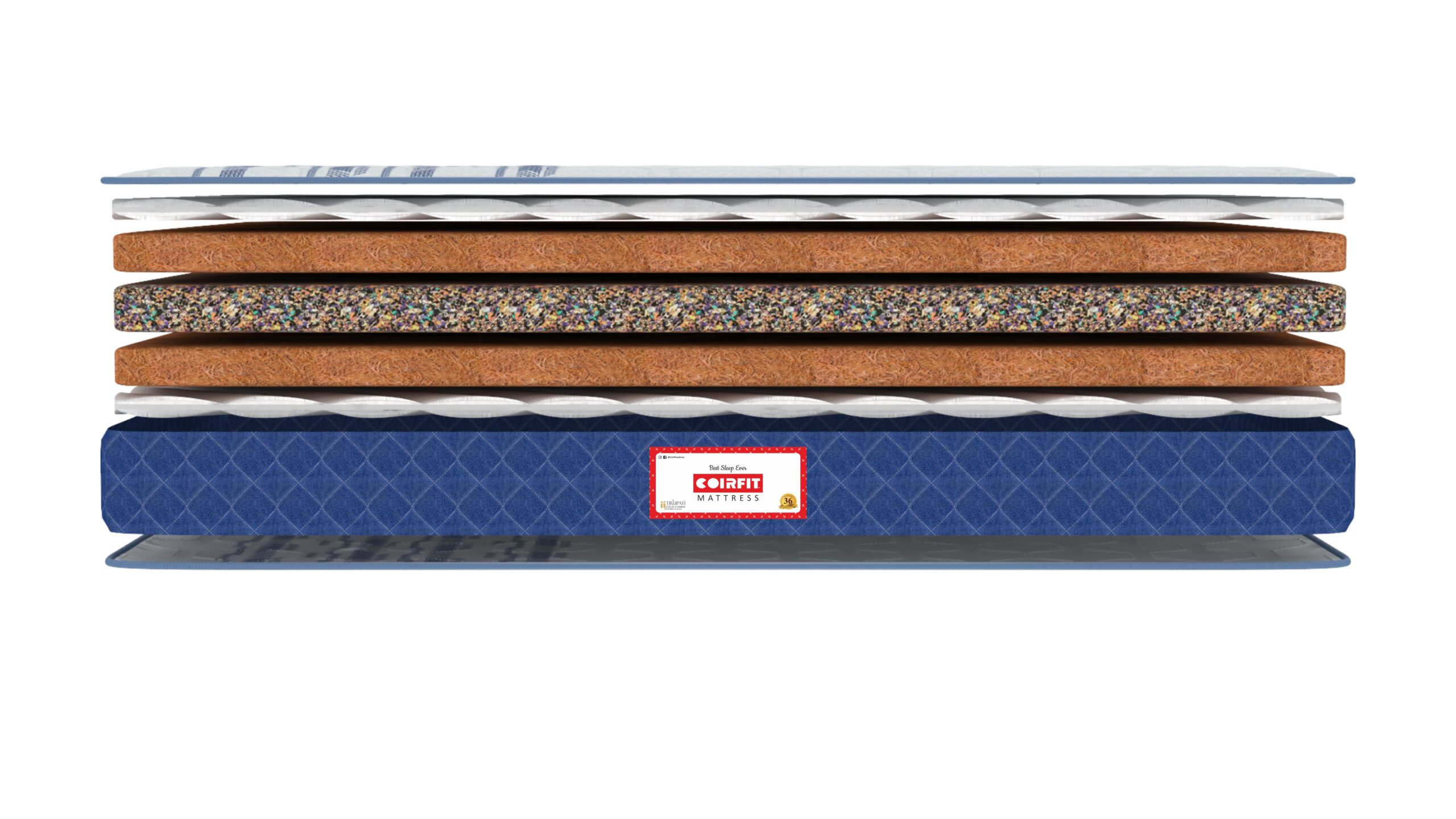 Premium Knitted & Quilted Fabric + PU Foam Quilt + Rubberised Coir + Recharge Rebonded Foam + Rubberised Coir + Premium Knitted & Quilted Foam