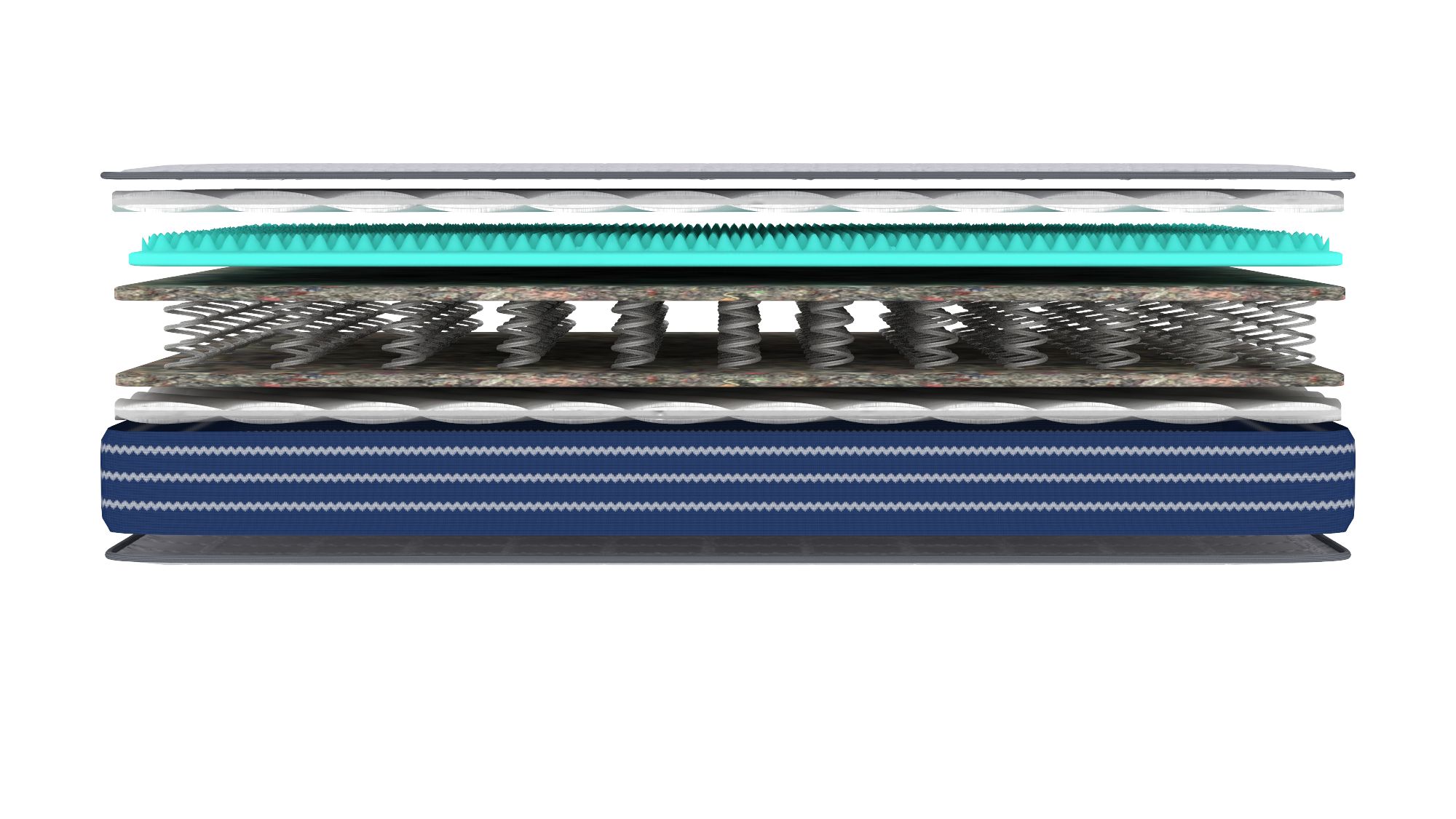 Premium Knitted & Quilted Fabric + Plush PU Foam Quilt + 30D Convoluted HR Foam + Egyptian Felt + Magno Alloy Tempered Bonnell Springs + Egyptian Felt + PU Foam Quilt + Premium Knitted & Quilted Fabric