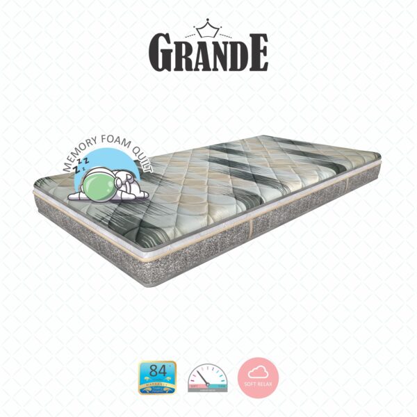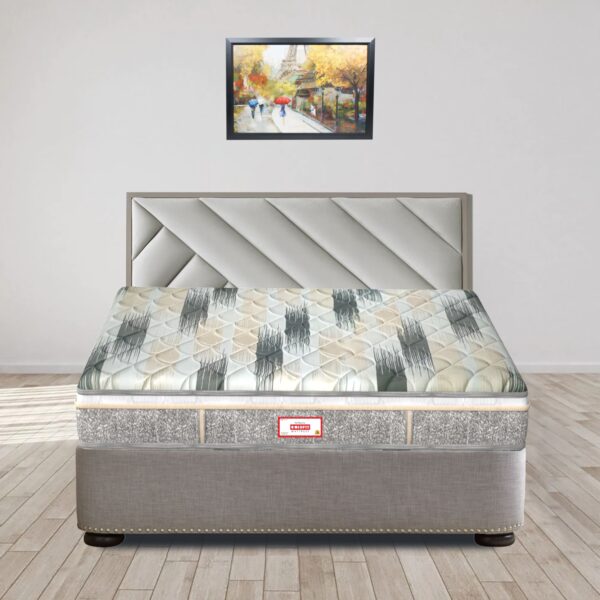 Premium Knitted & Quilted Fabric + PU Foam Quilt + Convoluted HR Foam + Backcare Rebonded Foam + Euro Top Construction + Premium Knitted & Quilted Fabric + Non Skid Base Fabric