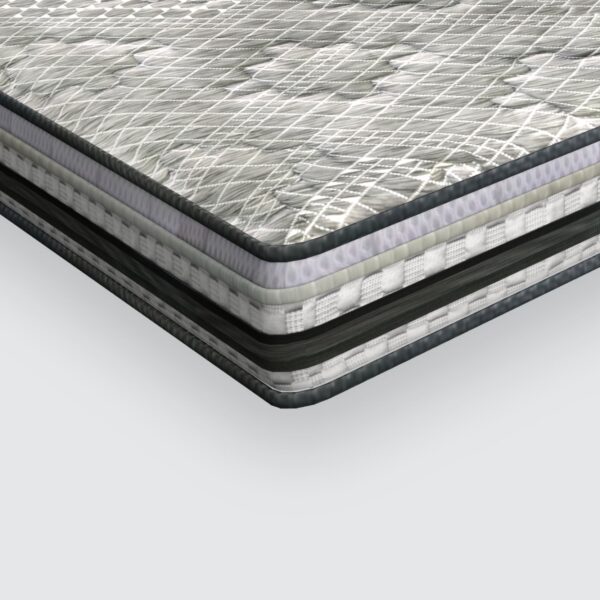Premium Melange Knitted Fabric + Cool Gel Memory Foam + 3 Zone Pneumatic HR Foam + Backcare Rebounded Foam + Egyptian Felt + PU Foam Quilt + 3D Knitted Side Fabric + Non Skid Base Fabric