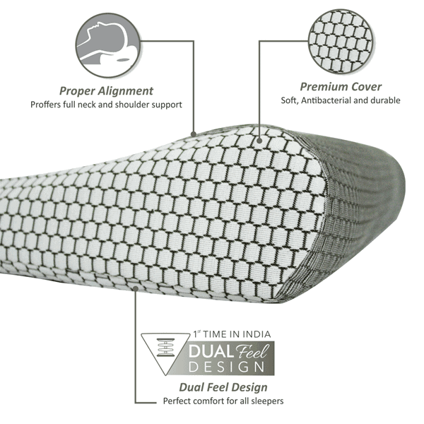 - With high and low contours, the pillow features 1st time in India, Dual Feel Design.