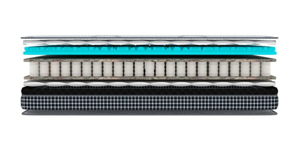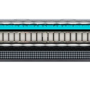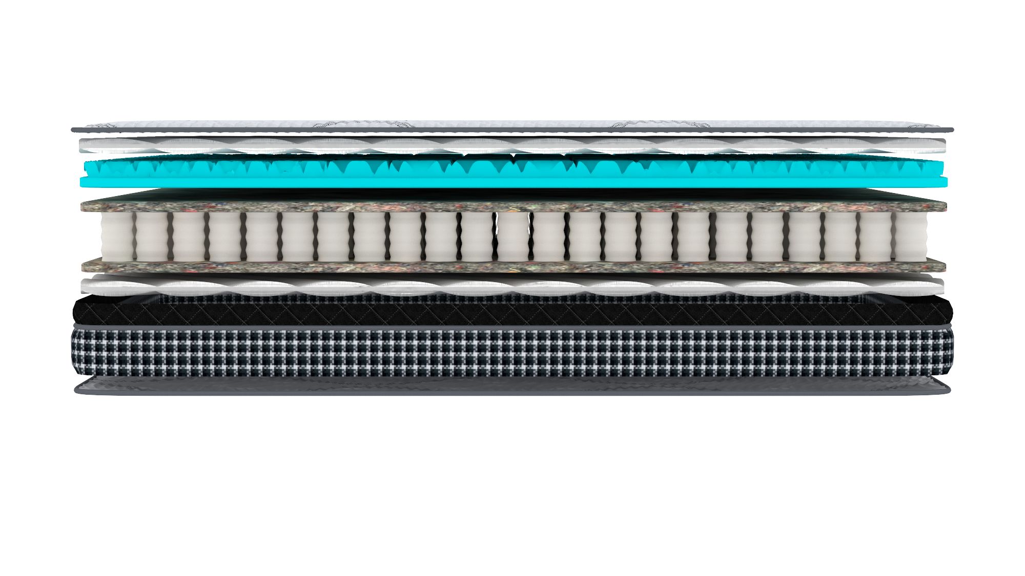High GSM Quilted Fabric +Plush Foam Quilt +3 Zone Pnuematic HR Foam +Egyption Felt +Euro Top Construction +Non Skid Base Fabric