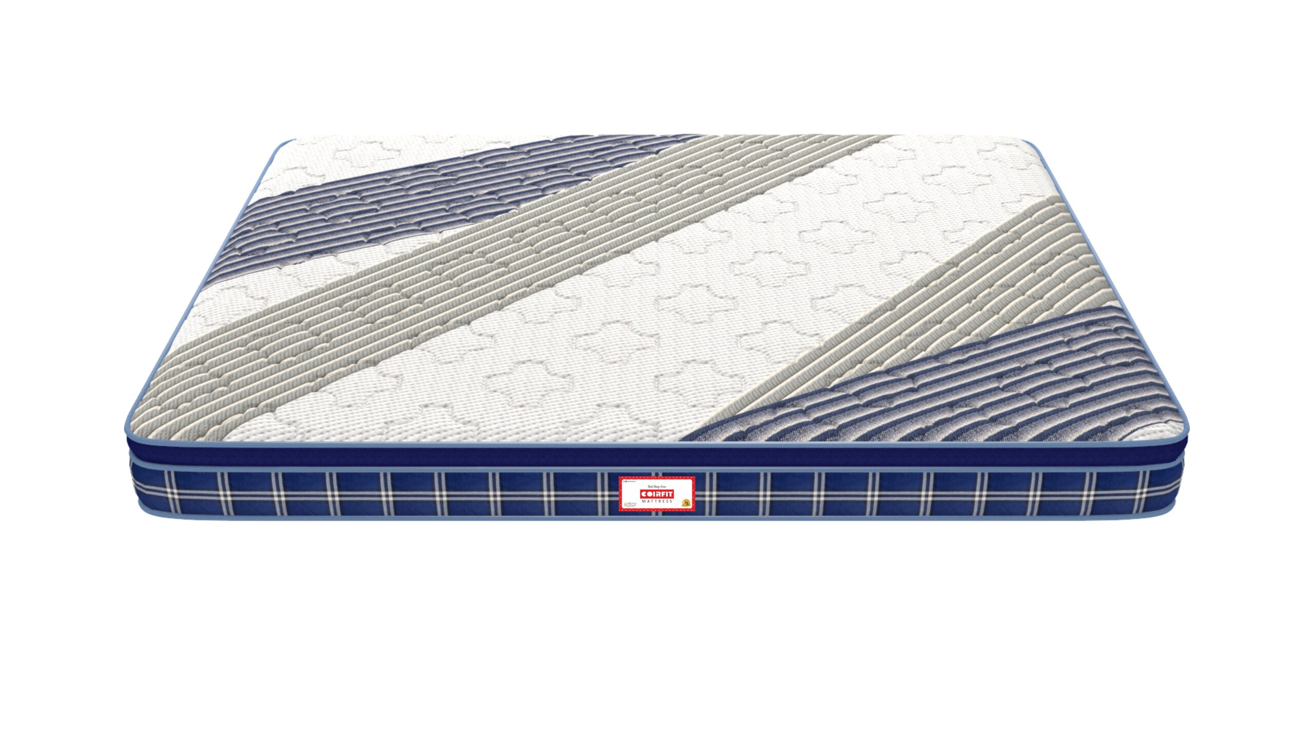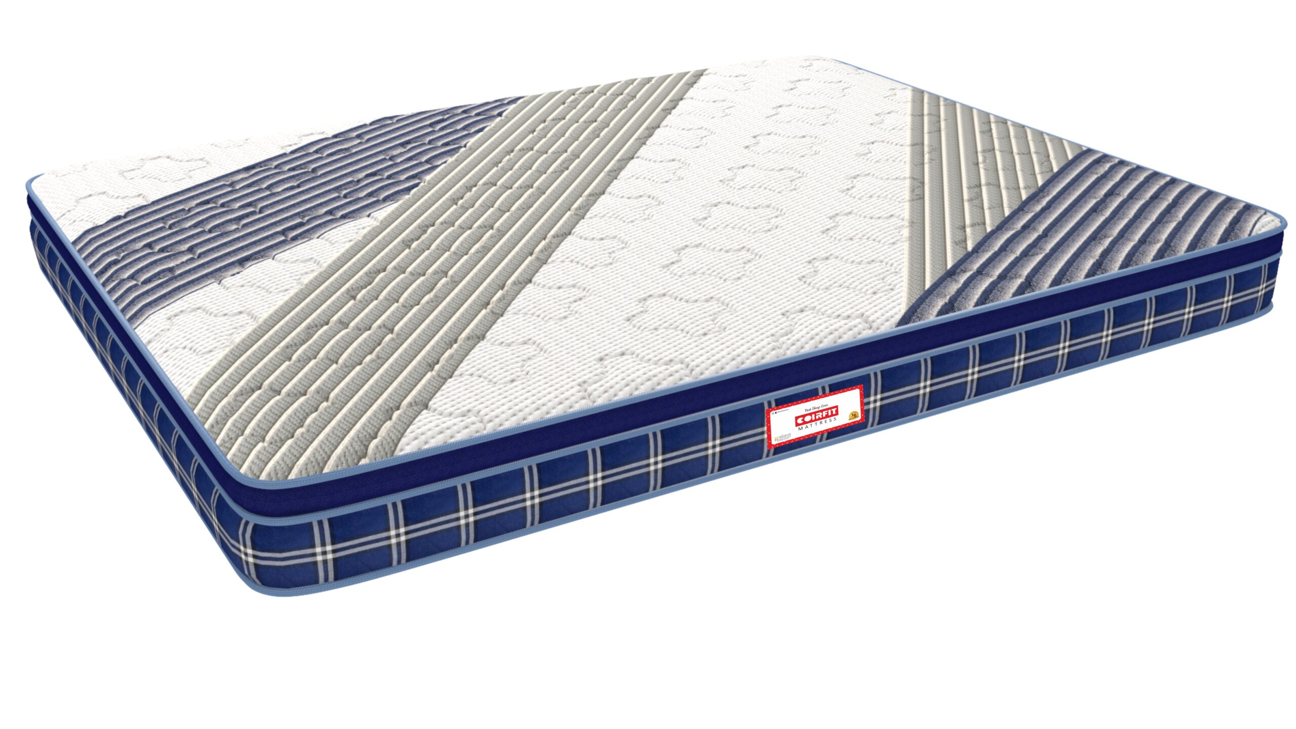 High GSM Quilted Fabric+ Plush PU Foam Quilt+ 3 Zone Pnuematic HR Foam+ Egyptian Felt+ agno Alloy Tempered Bonnell Springs+ Egyptian Felt+ Euro Top Construction+ Premium Knitted Side Fabric+ Non Skid Base Fabric